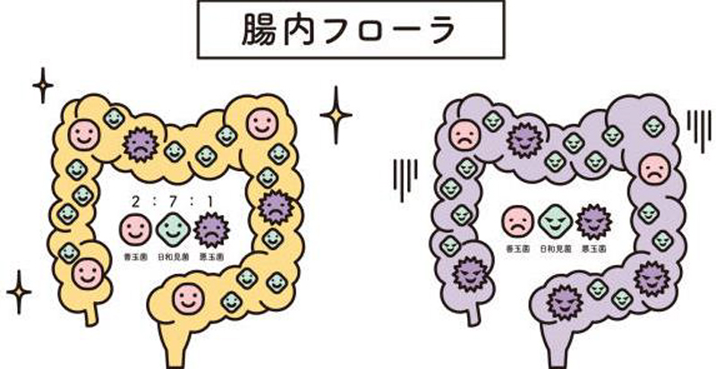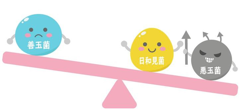 腸内細菌の理想的なバランスは、善玉菌2日和見菌7悪玉菌1 と言われており、バランスが崩れると、様々な心身の不調など悪影響を及ぼす可能性があります。