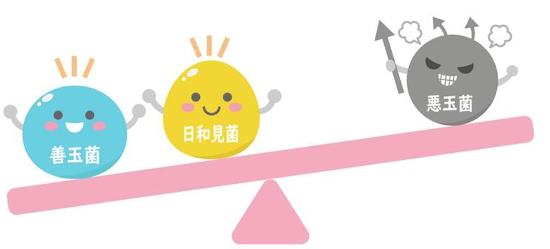 「善玉菌」「日和見菌」「悪玉菌」の3つのタイプに分けられ、それぞれ異なった役割を担っており、どれも体には必要な菌です。