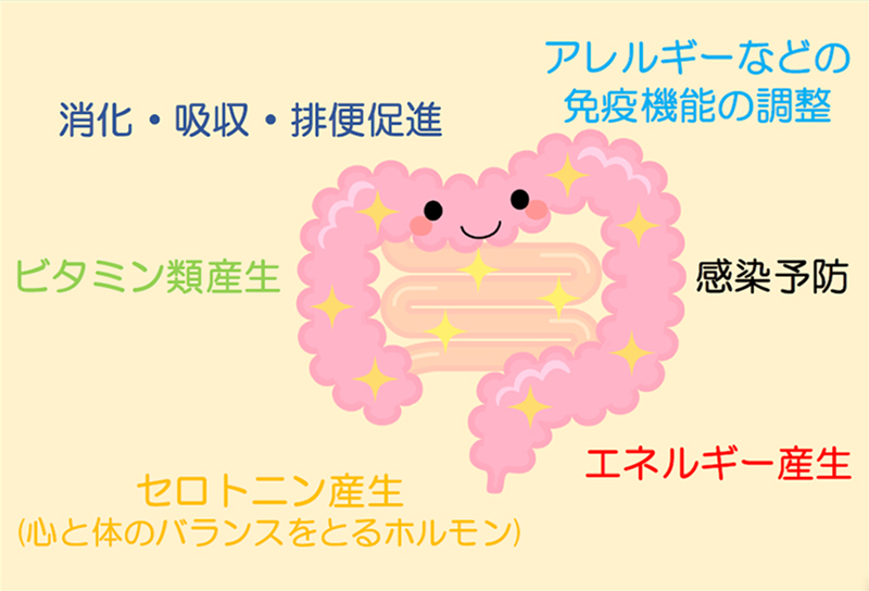 腸内細菌には、健康を維持していくうえで図のように、たくさんの重要な働きがあります。